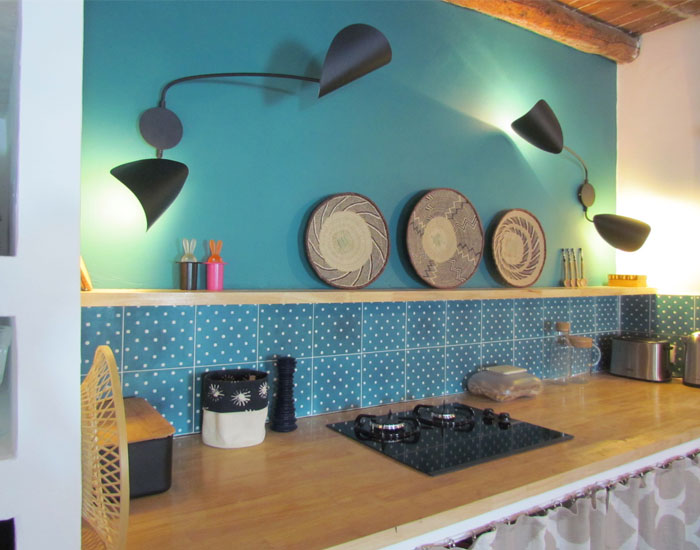 – Sarah Lavoine” blue to give character and a contemporary air to this masonry kitchen.