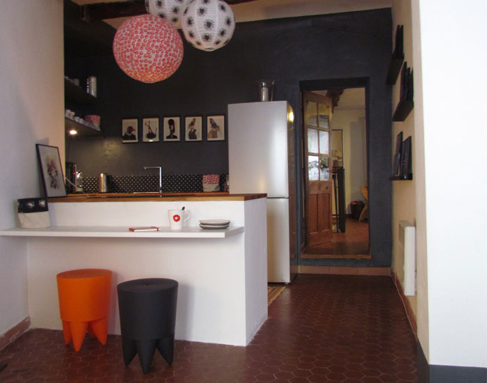– an anthracite grey to delimit and integrate a kitchen moved into the living room, overturning the classic codes of this technical room,